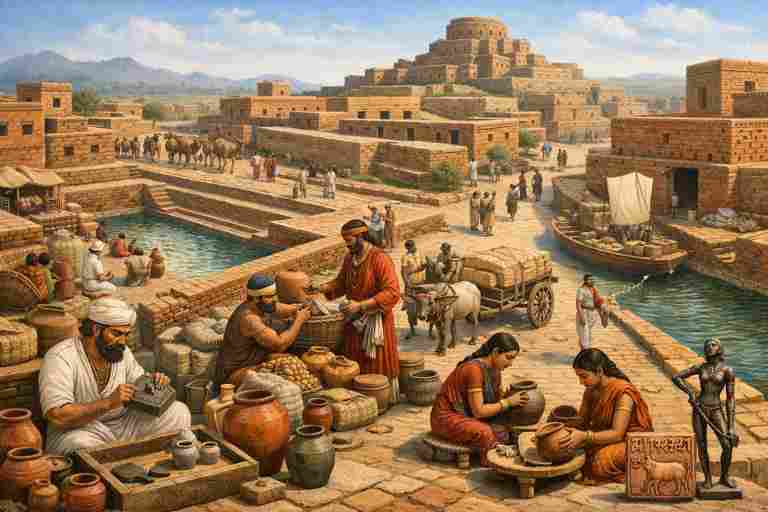 সিন্ধু বা হরপ্পা সভ্যতার ইতিহাস থেকে জানা যায় যে এই সভ্যতার মানুষ কৃষি, পশুপালন, বাণিজ্য ও কারুশিল্পে অত্যন্ত দক্ষ ছিল। তারা ধাতু ব্যবহার, মৃৎশিল্প, সিলমোহর নির্মাণ এবং বিভিন্ন ধরনের অলংকার তৈরিতে পারদর্শী ছিল। এছাড়াও মেসোপটেমিয়ার সঙ্গে তাদের বাণিজ্যিক যোগাযোগ ছিল বলে প্রত্নতাত্ত্বিক প্রমাণ পাওয়া যায়।