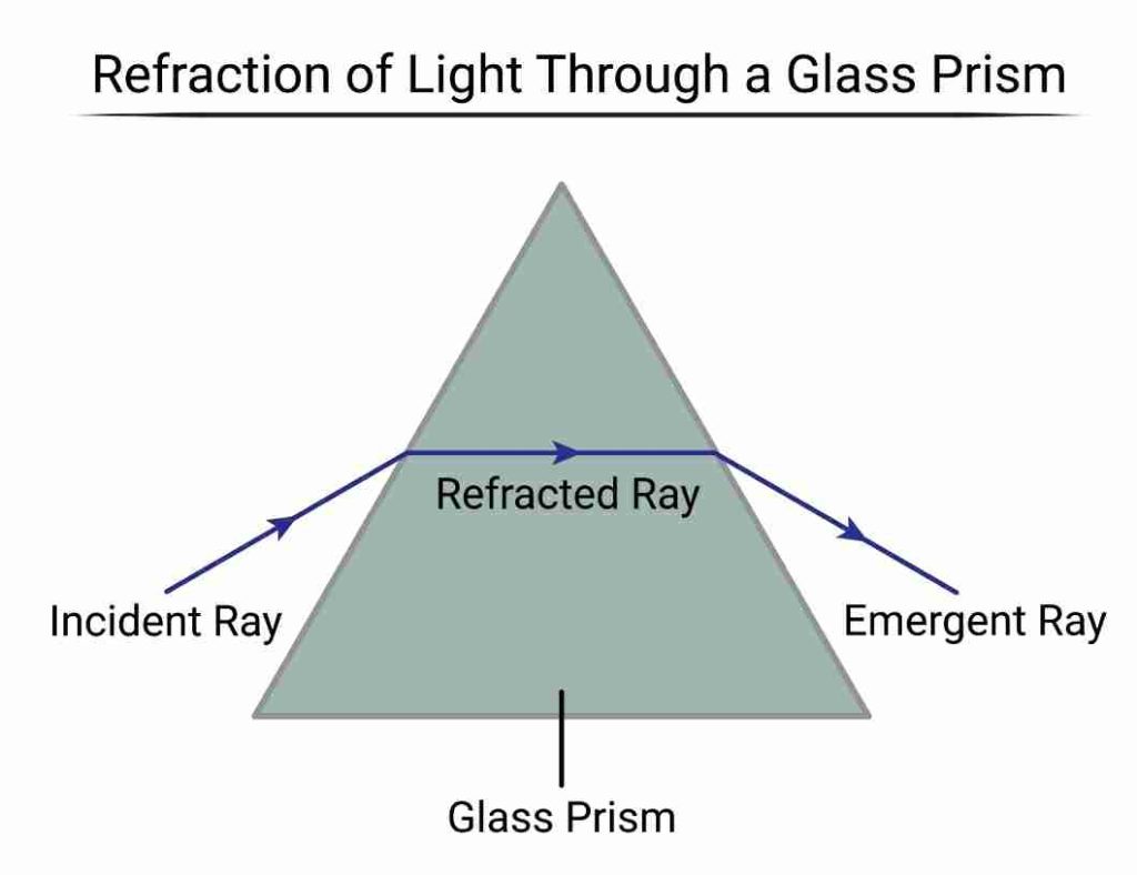 - লঘু মাধ্যম থেকে ঘন মাধ্যম: আলো যখন বাতাস (লঘু) থেকে কাঁচ বা পানিতে (ঘন) প্রবেশ করে, তখন এটি অভিলম্বের দিকে সরে আসে। এক্ষেত্রে i > r হয়।