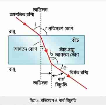- আপতন কোণ (i): আপতিত রশ্মি ও অভিলম্বের মধ্যবর্তী কোণ।